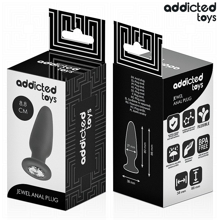 Addicted Toys Anal Plug With Jewel Silicone Size S vás plynulo zavedie do sveta análneho potešenia a zanechá iskrivý dojem. Je kompaktná a premyslene tvarovaná, takže sa príjemne nosí aj dlhšie. Telo z medicínskeho silikónu je na dotyk hebké a flexibilné, aby sa prispôsobilo vášmu tempu. Ergonomický profil podporuje ľahké zasúvanie, zatiaľ čo rozšírená základňa so šperkom očarí vzhľadom a drží všetko bezpečne na mieste. Veľkosť S je ideálna pre začiatočníkov – ponúka pocit naplnenia bez preťaženia a dovoľuje hrať sa dlhšie a pohodlne. Hladký povrch s kvapkou vodného lubrikantu kĺže snovo a bez trenia. Každý milimeter má zmysel – od kompaktnéj výšky cez príjemnú šírku až po zasúvateľnú dĺžku pre kontrolu a jemnú intenzitu.