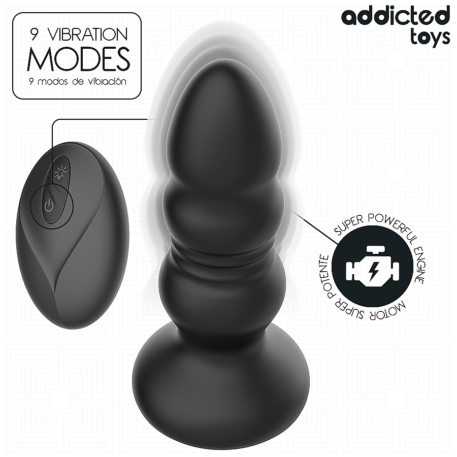 Addicted Toys Thrusting Vibrating Anal Plug od Addicted Toys ponúka dva nezávislé motory, ktoré roztancujú telo do štekliacich ťahov a pulzov. 9 režimov thrustingu zvládne nežné dotyky aj dôrazné vlny. 9 vibračných módov sa dá ľubovoľne kombinovať pre bohaté spektrum stimulácie. Bezdrôtové diaľkové ovládanie umožní meniť rytmy jediným stlačením a nechať partnera, nech prevezme kontrolu. LED svetlo meniace farby v základni vytvorí modernú, zmyselnú atmosféru. Prémiový silikón je jemný, bezpečný pre telo a ľahko sa udržiava, zatiaľ čo široká základňa zaručí pohodlné a bezpečné používanie. Vďaka vodoodolnosti je pôžitok ešte voľnejší a bez starostí. Kompaktné rozmery 11,9 × 3,7 cm a hmotnosť 126 g uľahčia zavádzanie a stabilné nosenie. Nabíjanie cca 70 minút prinesie až 70 minút intenzívnej rozkoše.