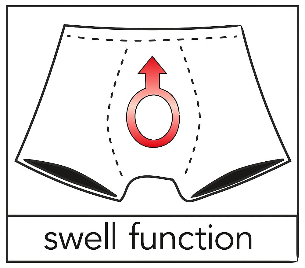 Pánské trenýrky v černé barvě. Zajímavé provedení se speciální funkcí Swell. Díl pro penis je ušit tak, aby byl oddělen od těla speciální kapsičkou a tím vypadal v trenýrkách větší.