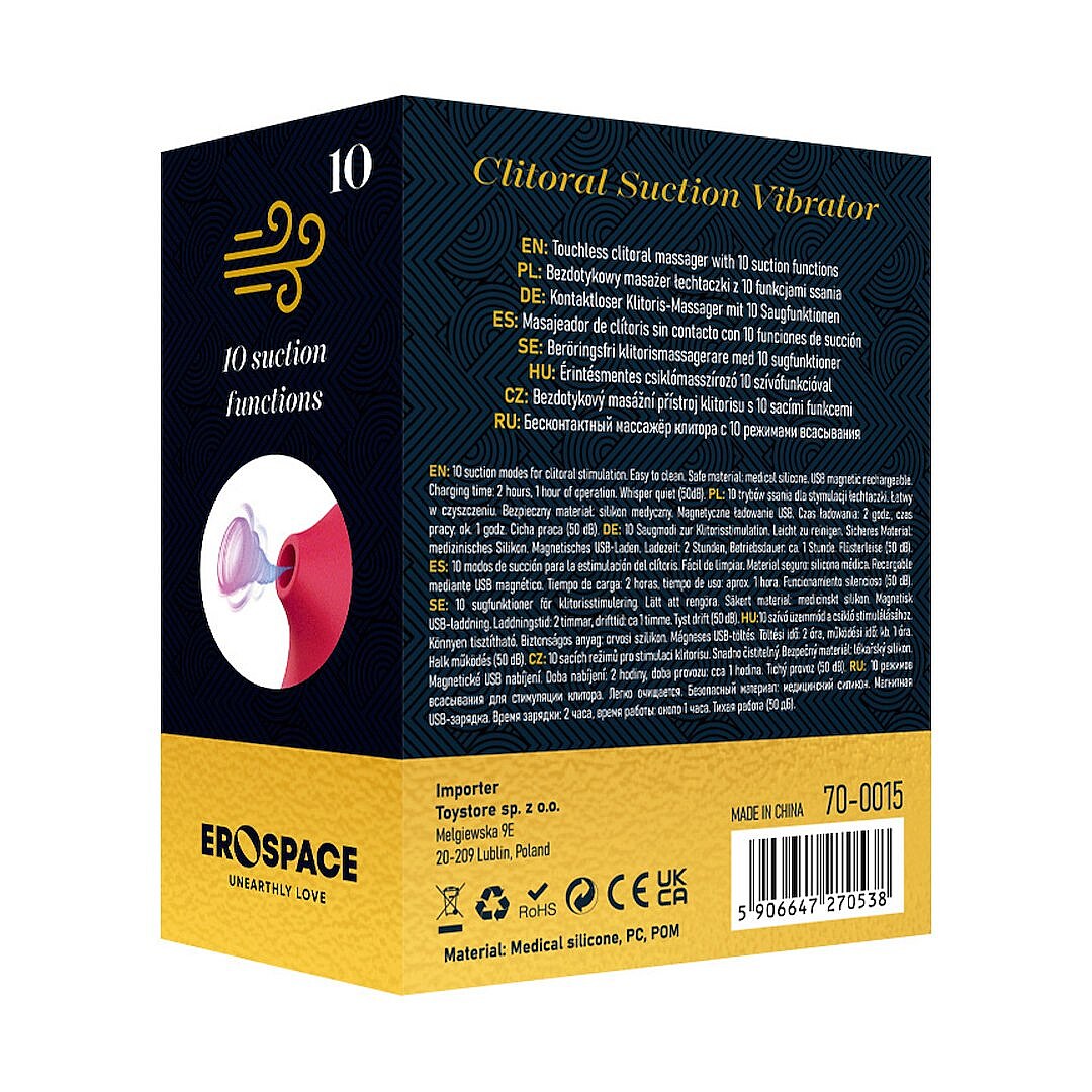 Sweet Play A15 Clitoral Massager od Erospace dráždi klitoris precíznym sacím nástavcom. Desať pulzačných režimov mení intenzitu aj rytmus, aby ste si našli ideálnu vlnu rozkoše. Ergonomická srdcová rukoväť sedí v dlani bezpečne a umožní úplnú kontrolu bez pošmyknutia. Tichá prevádzka do 50 dB zaistí diskrétnosť vždy a všade. Vodeodolnosť IPX6 pozýva do sprchy, kde kvapky zvýraznia každé nasatie. Hebký medicínsky silikón je šetrný k pokožke, odolné PC a POM pridávajú stabilitu a dlhú životnosť. Kompaktné rozmery sú ideálne na cesty, takže potešenie máte stále poruke. Batéria 700 mAh vydrží až 60 minút a magnetické USB nabíjanie doplní energiu za 120 minút. Intuitívne tlačidlá uľahčia ovládanie a jemný dizajn je skvelým tipom na darček.