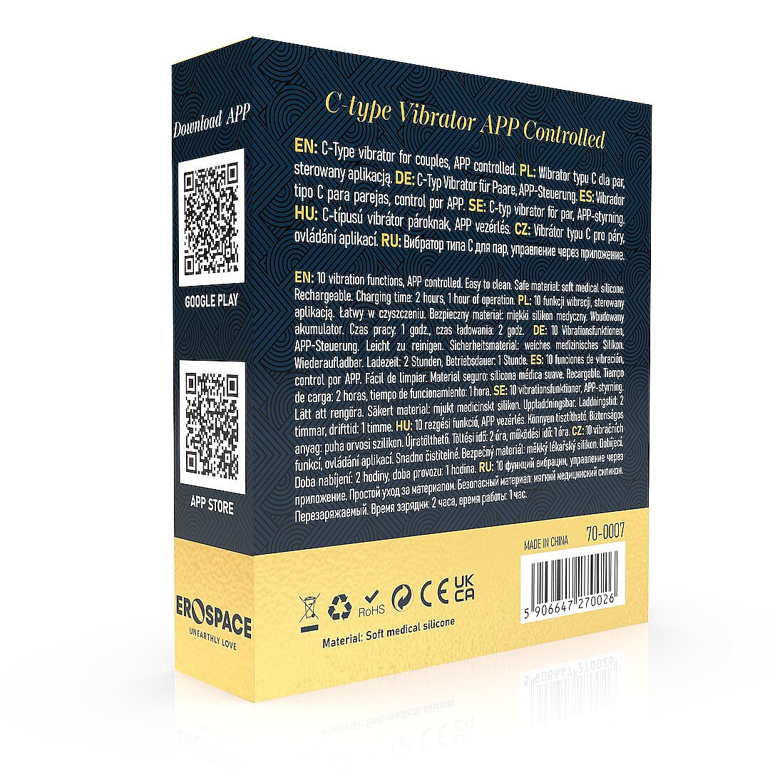 Erospace Sweet Play A7 C-Type Vibrator App Control od značky Erospace je vytvorený pre partnerské aj sólo potešenie. Dva motory umiestnené na oboch koncoch sa starajú o intenzívnu stimuláciu a ešte bohatší zmyselný zážitok počas milovania aj pri súkromnom objavovaní rozkoše. Ovládanie cez aplikáciu prináša väčšiu voľnosť, vzrušujúcu hravosť aj pohodlné nastavovanie režimov podľa chuti, zatiaľ čo tlačidlo priamo na pomôcke umožňuje rýchle manuálne ovládanie. K dispozícii je 10 vibračných funkcií, vďaka ktorým si ľahko nájdete ideálny rytmus od jemného chvenia až po intenzívne pulzovanie. Jemné vrúbkovanie na povrchu spríjemňuje kontakt s telom a zvyšuje citlivé vnemy. Hebký lekársky silikón je hypoalergénny, šetrný k pokožke a veľmi príjemný na dotyk. Vodotesné vyhotovenie IPX7 umožňuje používanie aj vo vani alebo v sprche. Tichý chod motorov podporuje diskrétnosť a vstavaná batéria s USB nabíjaním zabezpečí pohodlné používanie bez zbytočných komplikácií. Po použití pomôcku jednoducho očistíte a pripravíte na ďalšie zvodné chvíle.