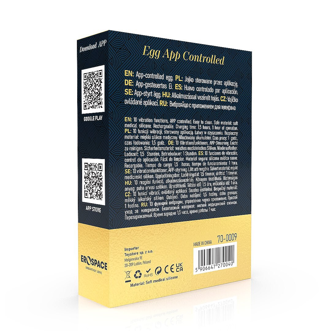 Erospace Sweet Play A9 App-controlled Egg od značky Erospace je sofistikovaná erotická pomôcka navrhnutá pre intenzívnu a variabilnú stimuláciu. Ovládanie cez aplikáciu aj tlačidlami priamo na pomôcke vám dáva slobodu vychutnať si diskrétnu sólo zábavu aj zvodné partnerské hry. Vďaka 10 vibračným funkciám si ľahko nastavíte jemné chvenie aj výraznejšie pulzy presne podľa nálady a citlivosti. Povrch z hebkého lekárskeho silikónu je príjemný na dotyk, šetrný k pokožke, hypoalergénny a navrhnutý tak, aby nedráždil ani pri dlhšom používaní. Vodoodolné vyhotovenie IPX6 umožňuje zobrať si túto rozkoš aj do sprchy alebo vane. Tichý motor podporuje diskrétnosť, zatiaľ čo vstavaná nabíjateľná batéria s USB nabíjaním prináša pohodlné používanie bez výmeny batérií. Po plnom nabití ponúkne približne 1 hodinu prevádzky a nabíjanie trvá asi 1,5 hodiny. Vďaka jednoduchému čisteniu je táto pomôcka nielen zvodná, ale aj praktická na pravidelné používanie.