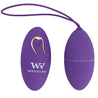 Diaľkovo ovládané vibračné vajíčko Womanvibe Alsan potiahnutý hodvábne jemným silikónom. Rozmery vajíčka 3,5 x 7,1 cm. Poteší ťa 12 vibračnými režimami. Silný motorček ťa privedie k okamžitému orgazmu. Napájanie 3x AAA batérie. Jednoduché používanie.
