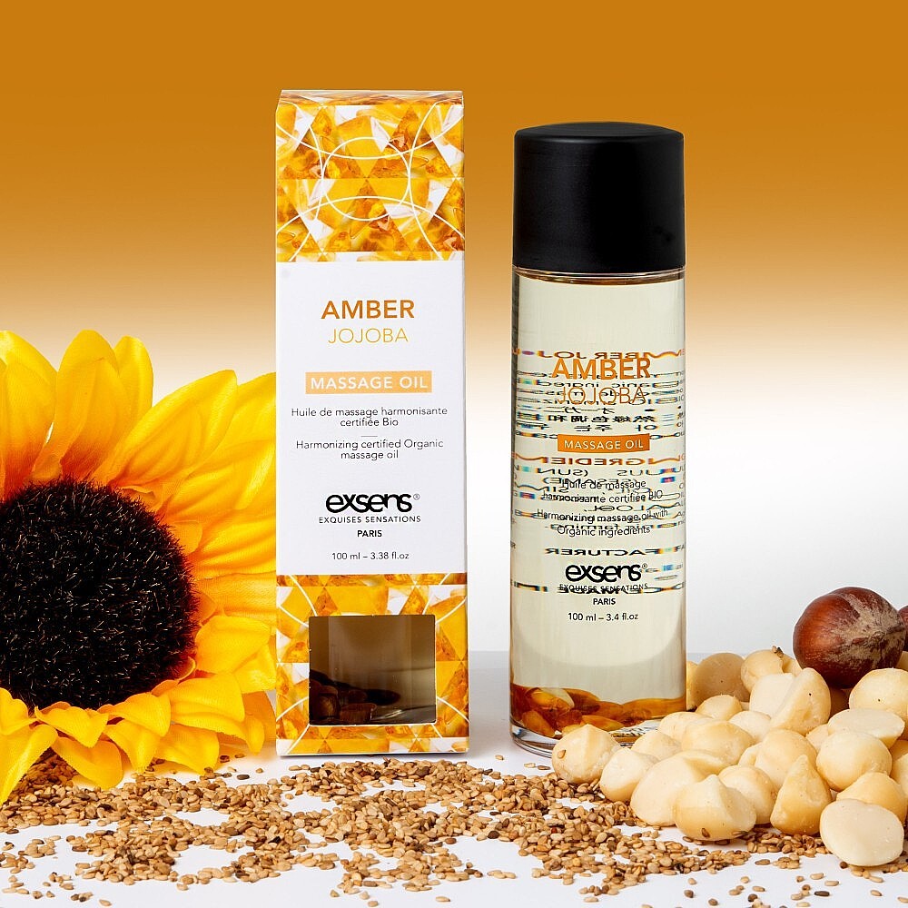 Večnosť dotyku a pohladenia... Exsens Organic Massage Oil Amber Jojoba je harmonizačný masážny olej, ideálny na každodenné použitie. Obohatený o jojobový olej, môže byť tiež použitý ako telový olej, ktorý vyživuje a zjemňuje pokožku.