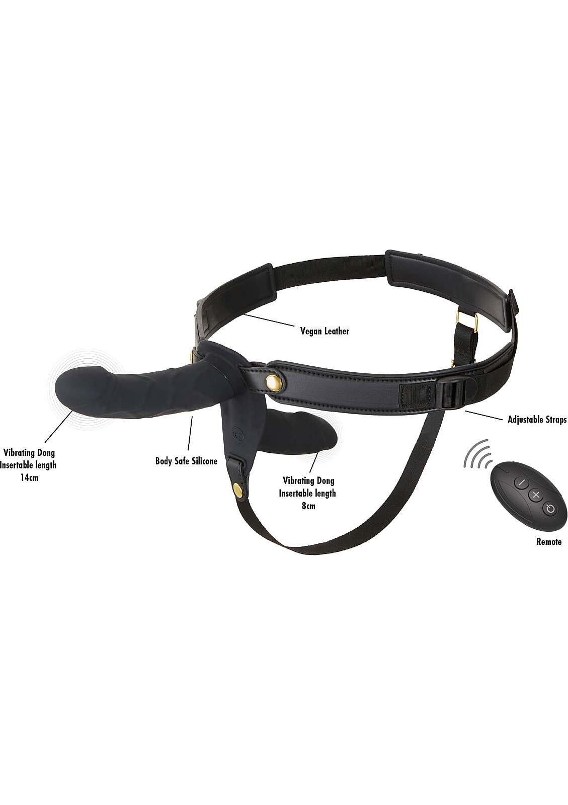 Dvojitý vibračný strap-on so 2 motormi, 10 režimami, bezdrôtovým ovládaním a vnútorným stimulátorom pre nositeľku. Silikón, nastaviteľný postroj, IPX5, nabíjateľný. Realistické dildo 14 cm, vložka 8 cm.