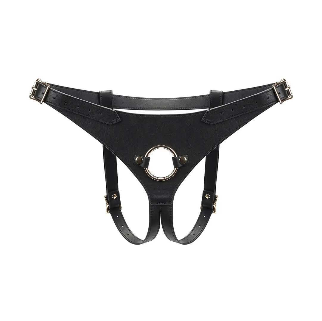 Liebe Seele Dark Secret Deluxe Leather Strap On Harness kombinuje čiernu hovädziu kožu so zlatými detailmi pre noblesu aj istotu. Predný O-krúžok s priemerom 3,8 cm (1,5" ) spoľahlivo udrží kompatibilné dildo a otvorí dvere intenzívnym zážitkom. Nastaviteľné pracky sadnú na obvod pása 74,9–111,8 cm a udržia postroj presne na mieste. Hovädzia koža je príjemná na dotyk, no odolná a pripravená na vášnivú akciu. Kolekcia Dark Secret spája dôstojnosť, eleganciu a extravagantný sex-appeal, ktorý vyplní vaše tajné túžby.
