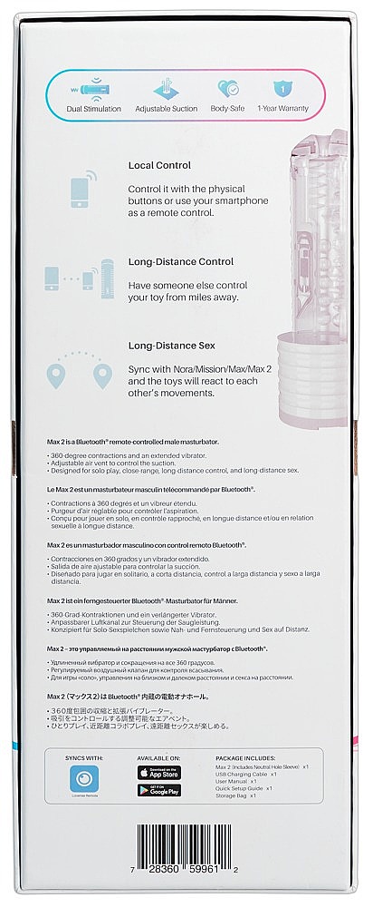 Lovense Max 2 Masturbator je plne automatický spoločník, ktorý dráždi celý penis jemnou tečkovanou vložkou z TPE a realistickým dotykom vás vedie krok za krokom k vyvrcholeniu. Sedem režimov vibrácií rozladí telo od nežného brnenia po intenzívne pulzy, tri nastavenia stahovacích kontrakcií obopnú vzrušenie presne podľa chuti. Pulzujúci podtlak napodobní tie najlepšie chvíle v posteli a vy si môžete vychutnať každý nádych slasti. Ovládanie je jednoduché – tlačidlá na tele zvládnete aj poslepiačky, no kúzlo začína s aplikáciou Lovense cez Bluetooth, kde si uložíte vlastné programy, necháte hračku reagovať na hudbu, hry, VR či interaktívne videá. Partner môže ovládať hračku na diaľku a vďaka teledildonickým senzorom sa pohyby kompatibilnej hračky prenesú priamo do vášho objatia – a naopak. Tlakový ventil na spodku riadi vákuum a bezpečné rýchle uvoľnenie zvládnete jedným stlačením. Vyberateľná vložka sa jednoducho čistí a môžete ju nahradiť inou Lovense vložkou. Dobíjanie cez USB je pohodlné, telo z ABS je odolné a neutrálny dizajn dáva vyniknúť iba vášmu potešeniu.