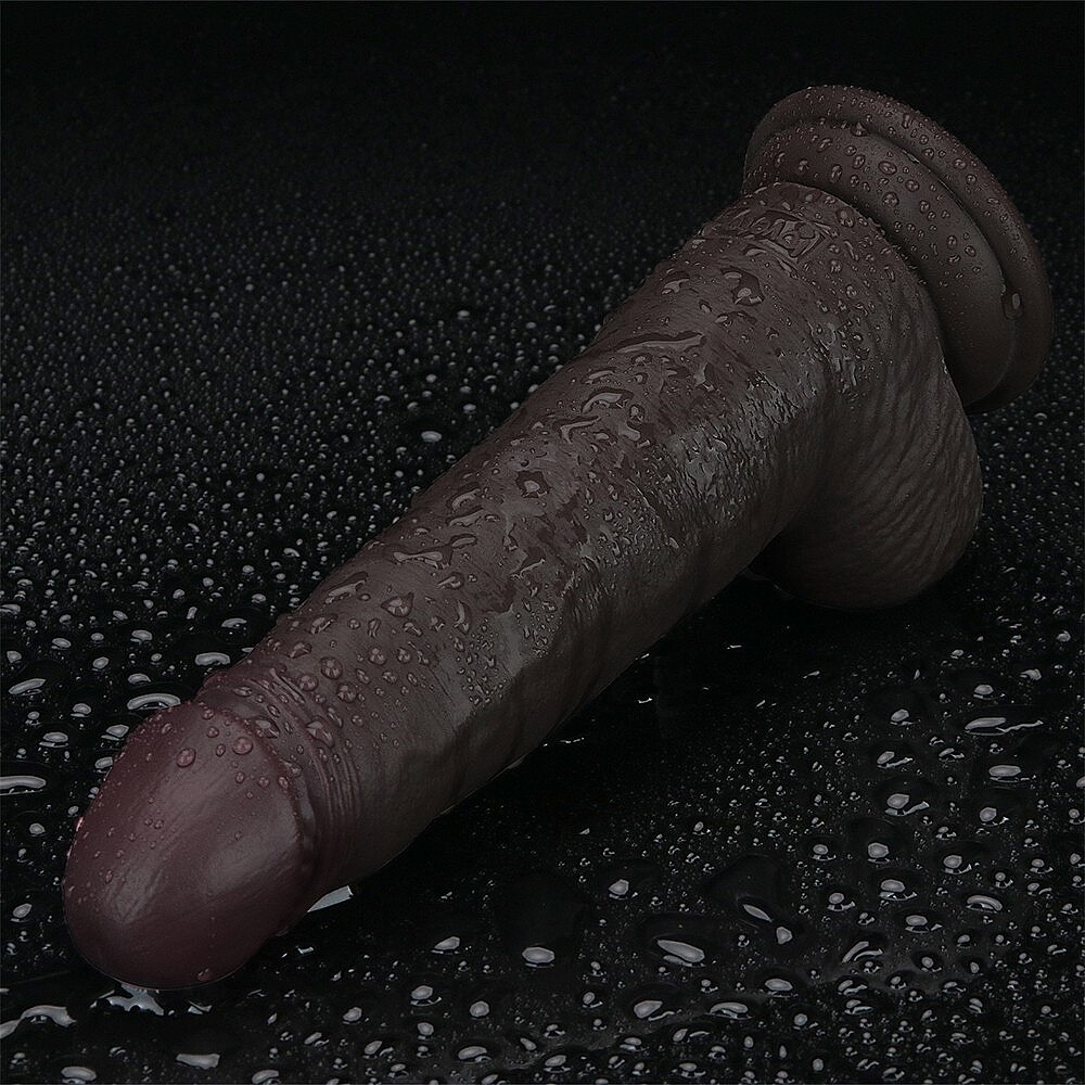 Sliding Skin Pro II 8,5'' Dual Layer Silicone Dong (Black) od značky Lovetoy prináša druhú generáciu technológie sliding skin, vďaka ktorej je povrch ešte jemnejší, pohodlnejší a vernejší na dotyk. Pokročilá dvojvrstvová konštrukcia spája mäkký vonkajší plášť s pevným vnútorným jadrom, takže pri používaní presvedčivo napodobňuje pocit erigovaného penisu. Lekársky silikón s dvojitou hustotou zvyšuje komfort, odolnosť aj celkovú autentickosť zážitku. Realisticky tvarovaný hriadeľ poskytuje hladký sklz, príjemný kontakt s telom a intenzívnu stimuláciu počas sólovej hry aj partnerských radovánok. Pre ešte lepší sklz a maximálne pohodlie sa odporúča použiť lubrikant na vodnej báze.