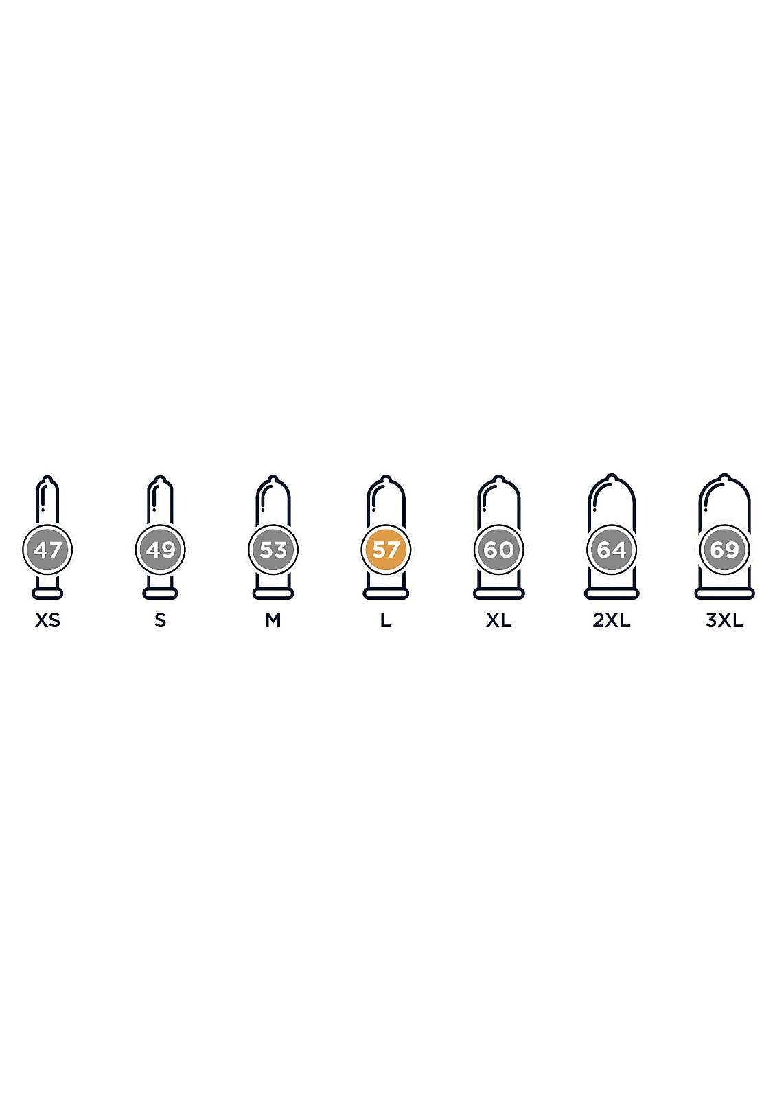 So MISTER SIZE CONDOM SIZE L 57mm pocítite prirodzený kontakt vďaka ultra tenkej hrúbke 0,05 mm, ktorá znásobí intenzitu každého pohybu. Precízne „fine tuning“ veľkosti znamená, že L šírka prilieha bezpečne a nešmýka sa ani na užších penisoch. Prírodný kaučukový latex je priesvitný a hladký, takže podčiarkne blízkosť a vizuálnu príťažlivosť. Predlubrikovaný povrch uľahčí vniknutie a plynulý rytmus bez zbytočného trenia. Praktický rezervoár pridáva pokoj v tých najžhavejších okamihoch. Vegánske zloženie poteší zodpovednú voľbu. Nominálna šírka 57 mm presne sadne na obvod penisu 12–13,5 cm – spoľahlivé padnutie, žiadne skĺznutie, len čistá rozkoš.