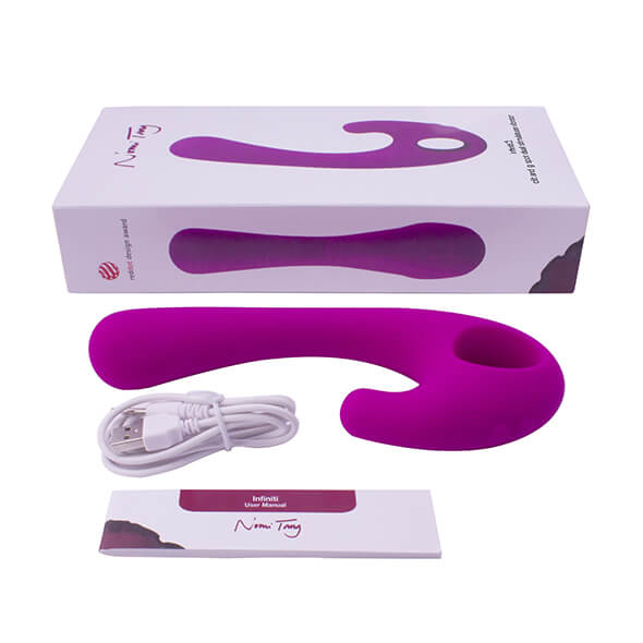 Ergonomický tvar vibrátora Nomi Tang Infiniti bol navrhnutý pre maximálne využitie potenciálu toho krásavca. Tvar skvele padne do ruky a vďaka použitému materiálu nekĺže. Rozšírená hlava dráždi G-bod skrz silný motorček. Kratšie stimulačný bod na tele vibrátora má tiež vlastnú motoriek, ktorým stimuluje klitoris ženy.