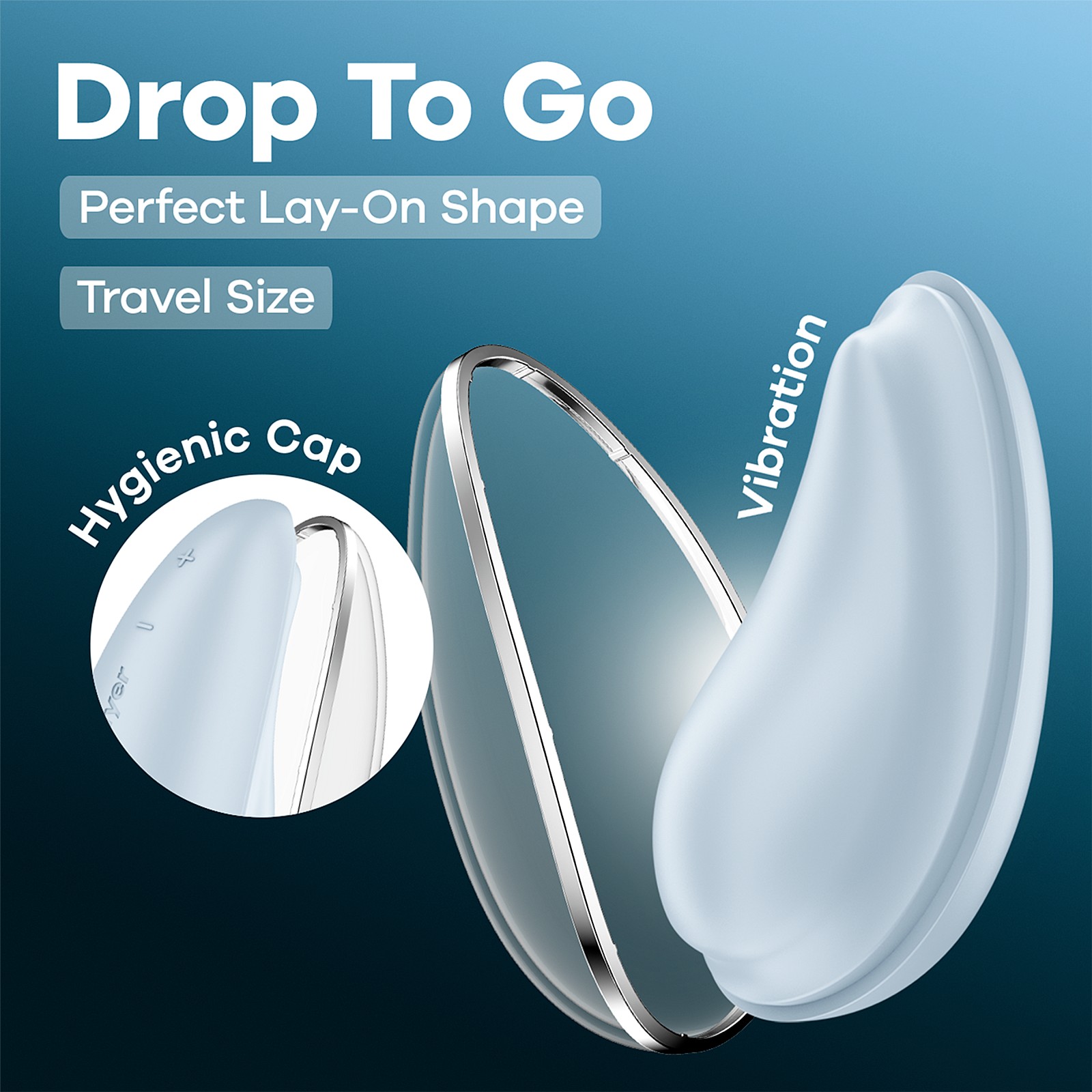 Satisfyer Drop To Go (Blue) je priložiteľný vibrátor v tvare kvapky, ktorý dokonale padne do ruky a nežne sa oprie o klitoris. 12 vibračných programov ťa prevedie od šteklenia po intenzívny nápor slasti. Extra hebký lekársky silikón s dvojitou vrstvou je hodvábny na dotyk a maximálne hygienický. Hygienický kryt z neho robí diskrétneho spoločníka do kabelky aj na dovolenku. Vodotesnosť IPX7 láka na vodné dobrodružstvá v sprche či vo vani. Výkonný a tichý motor šepká tak, aby si si mohla užiť nerušene. Rýchle USB‑C nabíjanie skráti pauzy medzi vrcholmi a jednoduchá údržba zaručí pripravenosť na ďalšie kolo. Vhodné pre začiatočníčky aj fajnšmekrov – ergonómia a intuitívne ovládanie ťa spoľahlivo dovedú do cieľa.
