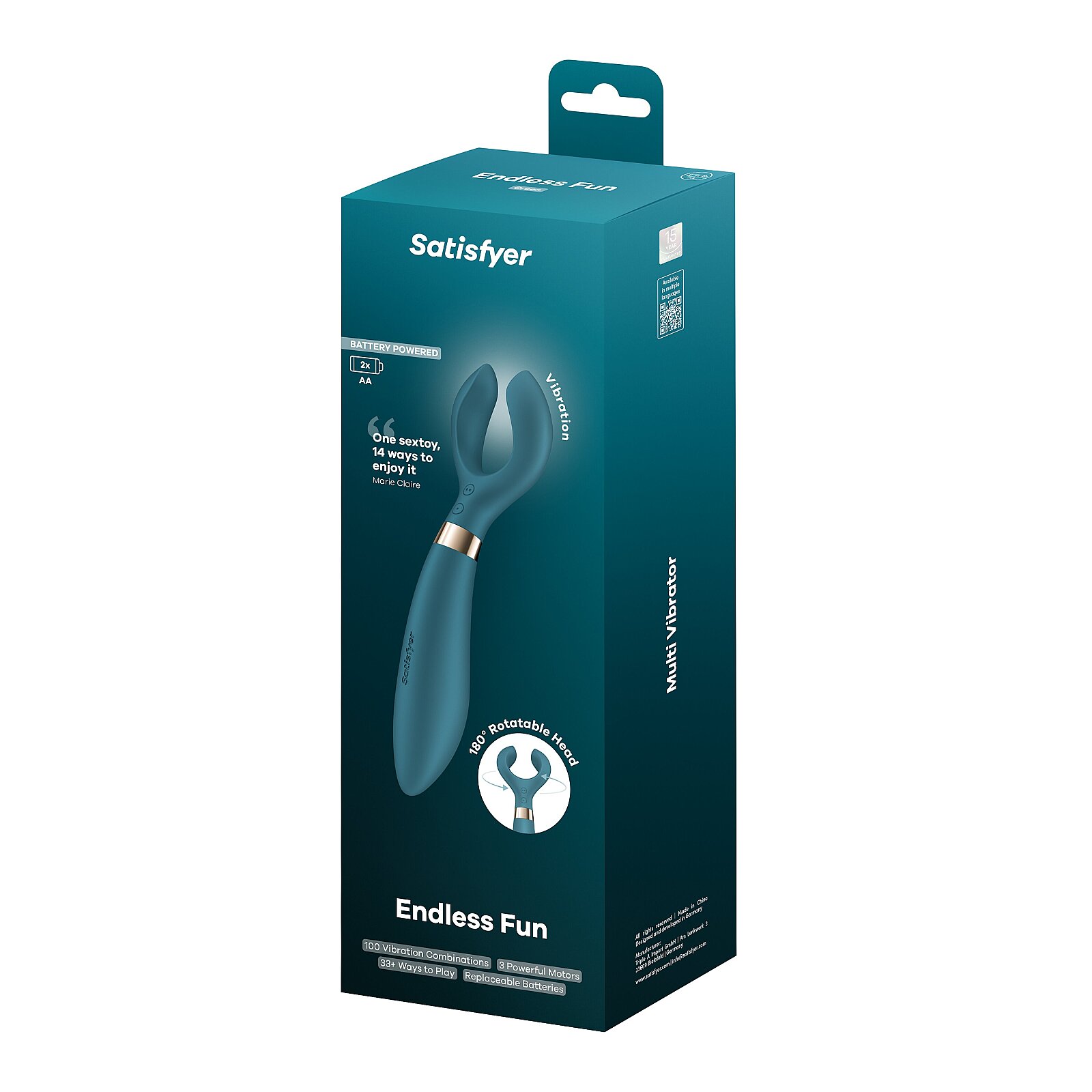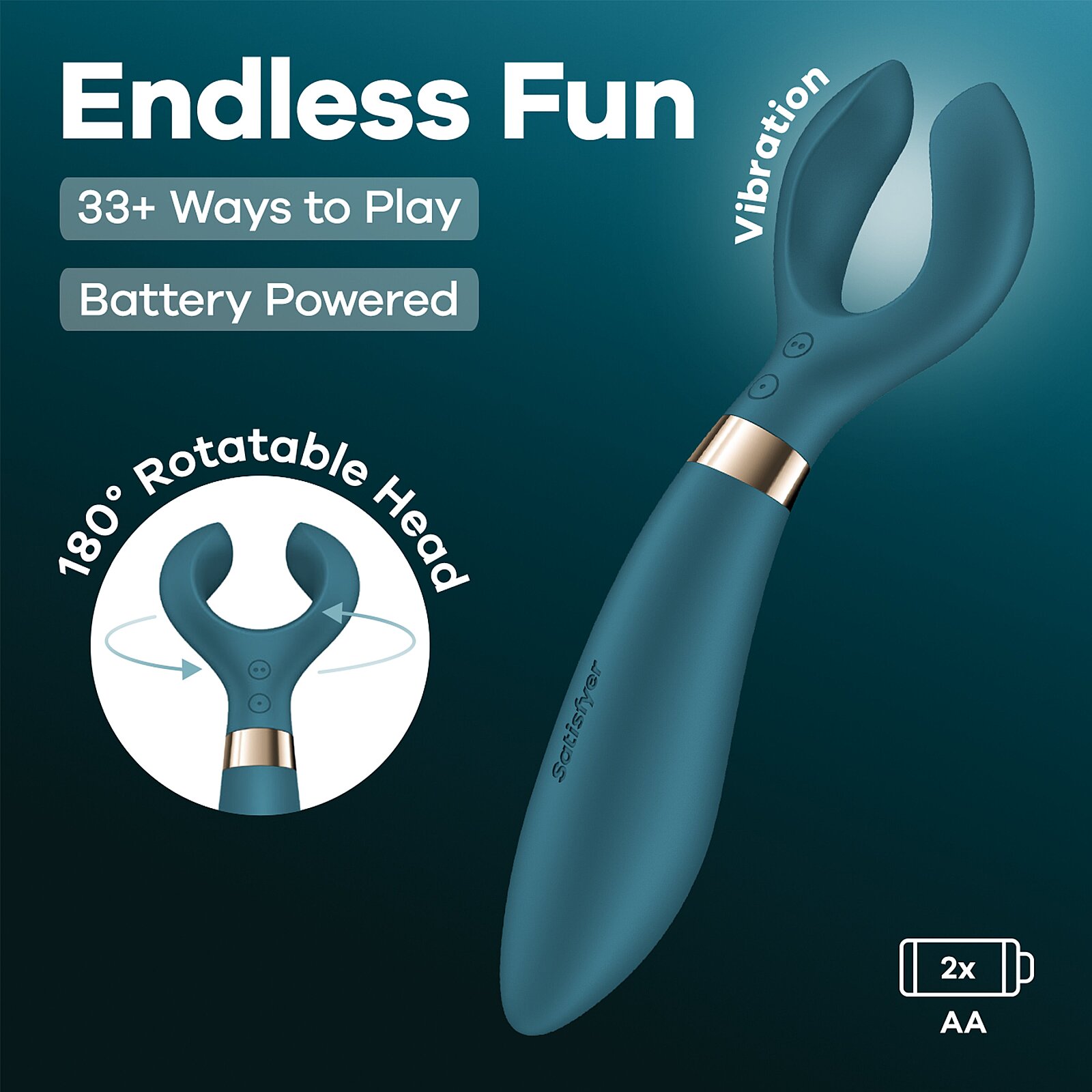 So značkou Satisfyer a modelom Endless Fun Battery Series si vychutnáte viac než 33 možností rozkoše. Tri silné motory ponúkajú 100 kombinácií vibrácií, ktoré rozmaznávajú klitoris, G‑bod aj žaluď. Otočná hlava o 180° sa prispôsobí všetkým polohám a dovolí hrať sa bez obmedzení. Zamatovo hebký, telu bezpečný silikón príjemne kĺže po pokožke a ľahko sa čistí. Vodotesnosť IPX7 pozýva do sprchy aj do vane. Napájanie dvoma AA batériami bez nabíjania je ideálne na cestovanie a spontánne potešenie. Flexibilné ramená nežne obopnú bradavky, pysky či žaluď a premenia dotyk na elektrizujúci zážitok. Ergonomický tvar skvelo padne do ruky a intuitívne tlačidlá držia tempo podľa vašej chuti.