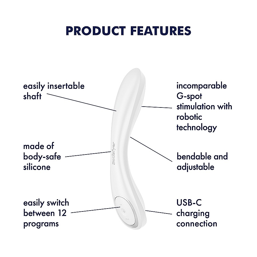 Satisfyer G-Spot Wave 2 (Ice Blue) zvádza G‑bod realistickými prstovými špirálami vďaka chytrej Robotic Technology, ktorá verne napodobňuje dotyk prsta a mieri priamo do vašich najcitlivejších miest. Ultra jemný, telu bezpečný silikón sa pružne prispôsobí vašim krivkám a kĺže po pokožke ako hodváb – nežne a pritom dôrazne. Z 12 programov Robotic Wave si vyberiete presne tú vlnu, ktorá vás naladí od pomalého šteklivého začiatku až po odvážnu intenzitu. Tichý režim udrží tajomstvo len medzi vami, aby ste si užili intímne chvíle kdekoľvek. Vďaka vodotesnosti IPX7 sa s ním ponoríte do vane aj sprchy a každé pohladenie získa nový rozmer. Intuitívne ovládanie na tele hračky vás nechá zostať v okamihu, zatiaľ čo USB‑C nabíjanie ho rýchlo pripraví na ďalšie kolo. Po akcii ho jednoducho umyjete vodou s jemným mydlom a čističom na erotické pomôcky – a je pripravený znova rozvlniť vaše zmysly.