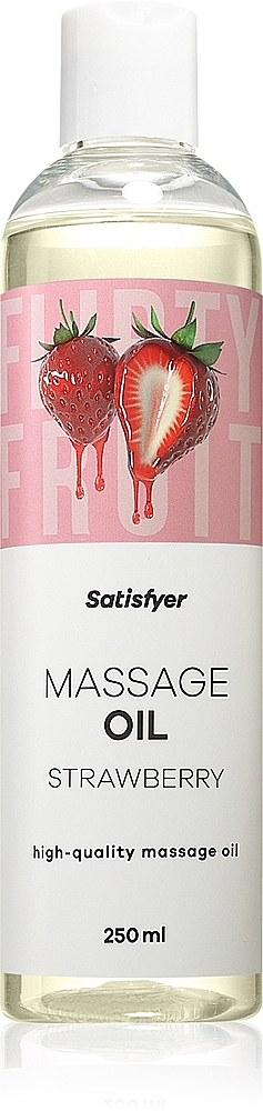Satisfyer Massage Oil 250 ml (Strawberry) vás zvedie šťavnatou vôňou čerstvých jahôd a premení každú masáž na hravý, podmanivý rituál. Satisfyer Massage Oil 250 ml (Strawberry) sa rozotiera s ľahkosťou, kĺže po koži ako hodváb a zanechá ju jemnú a na dotyk neodolateľnú – bez mastného pocitu. Hodvábna textúra sa krásne vstrebáva a pozýva k nekonečnému hladeníu. Osviežujúce jahodové aróma povzbudí zmysly a naladí telo aj myseľ na sladké hry. Vyživujúca zmes rastlinných olejov (slnečnicový, sójový, jojobový) dopraje pokožke hydratáciu a starostlivosť. Neutrálne, jemné zloženie rozväzuje ruky fantázii – pre nežné pohladenie aj vášnivú predohru. Jednoduchá aplikácia umožní naniesť malé množstvo a kedykoľvek pridať ďalšiu dávku slasti. Bez lepivosti, s dokonalou kĺzavosťou pre dlhé uvoľňujúce masáže. Objem 250 ml stačí na množstvo chvíľ, ktoré si budete chcieť zopakovať.