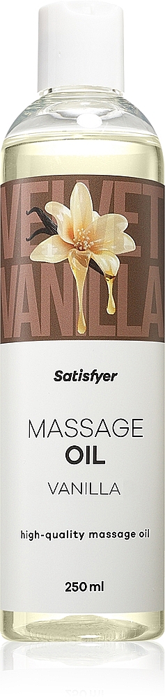 Satisfyer Massage Oil 250 ml (Vanilla) rozprestrie pri masáži príjemné teplo a sladko upokojujúcu vôňu vanilky, ktorá spríjemní každý dotyk. Satisfyer Massage Oil 250 ml (Vanilla) vyživí pokožku bohatou zmesou slnečnicového, sójového a jojobového oleja, aby bola hodvábne hladká a lákavo jemná. Satisfyer Massage Oil 250 ml (Vanilla) je stvorený na dlhé, rozmaznávajúce masáže – krásne kĺže a nechá telo uvoľniť sa do plnej rozkoše. Satisfyer Massage Oil 250 ml (Vanilla) účinkuje okamžite – pár kvapiek stačí a koža pocíti pohladenie výživy. Satisfyer Massage Oil 250 ml (Vanilla) môžete ľahko znovu naniesť vždy, keď zatúžite po ďalšej vlne potešenia. Satisfyer Massage Oil 250 ml (Vanilla) má jemné, neutrálne zloženie, ktoré nechá fantáziu voľne plynúť a podčiarkne intímnu náladu. Satisfyer Massage Oil 250 ml (Vanilla) je všestranný – rozohreje partnerské chvíle a pohladí pri self‑care rituáloch. S vitamínom E (tocopherol) ponúkne pleti starostlivosť, ktorá láka k dlhšiemu hladeniu. A s objemom 250 ml máte zásobu nežnosti na mnohé večery.