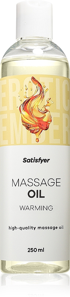 Satisfyer Massage Oil 250 ml (Warming) mení každý dotyk na príjemne zahrievajúce pohladenie a predlžuje chvíle intimity. Jeho prírodné zloženie sa jemne rozleje po pokožke a s každým ťahom dlaní prebúdza teplé iskrenie. Bez parfumácie rešpektuje citlivosť aj osobné preferencie a nechá vyniknúť prirodzenú vôňu tela. Hodvábna textúra kĺže ľahko a pozýva k ďalšiemu objavovaniu. Vyživujúca starostlivosť zanechá kožu hebkú a hladkú, aby pôžitok trval aj po masáži. Jemné zahrievanie sa rozvíja počas masáže, uvoľňuje a príjemne šteklí. Ideálne pre citlivú pokožku – hladí bez podráždenia a sústredí sa na potešenie. Praktický objem 250 ml vystačí na dlhé večery aj pravidelné rituály. Jednoduchá aplikácia – kvapnite do dlaní alebo priamo na telo a masírujte do slastného uvoľnenia.