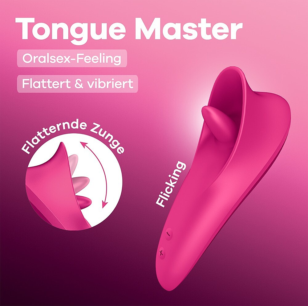 Satisfyer Tongue Master (Pink) s pružným silikónovým jazýčkom verne napodobňuje orálne dráždenie a zacieli na klitoris aj pysky presne podľa vašej nálady. Superjemný, telu priateľský silikón prenáša silné vibrácie mäkko a intenzívne. 9 režimov lízania a 9 vibračných programov ponúkne od jemného šteklenia po elektrizujúcu extázu. Dve intuitívne tlačidlá umožnia okamžité prepínanie a citlivé ladenie tempa. Predĺžené ergonomické držadlo dá ruke presnú kontrolu, aby ste vždy trafili tie najcitlivejšie miesta. Tichý režim stráži súkromie, aj keď ide o poriadnu jazdu. Vodeodolnosť IPX7 láka do sprchy aj vane a ľahké čistenie zvládnete behom chvíľky. Nabíjanie cez USB‑C a lítiová batéria sú pripravené na akciu vždy, keď na ňu dostanete chuť.