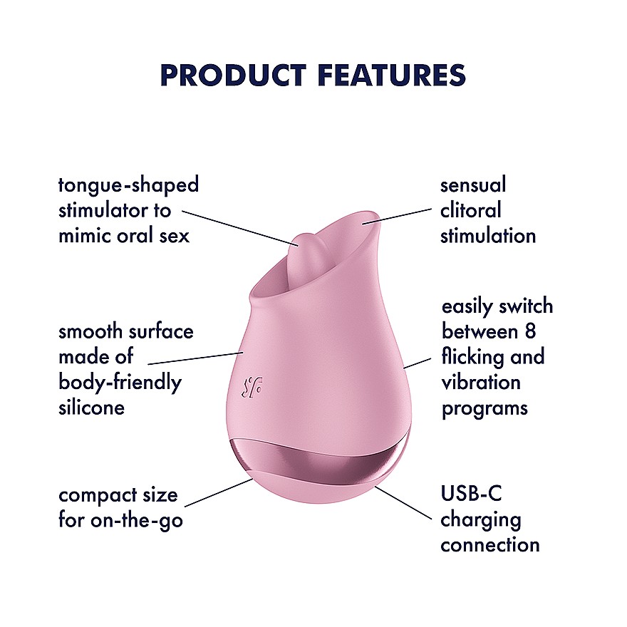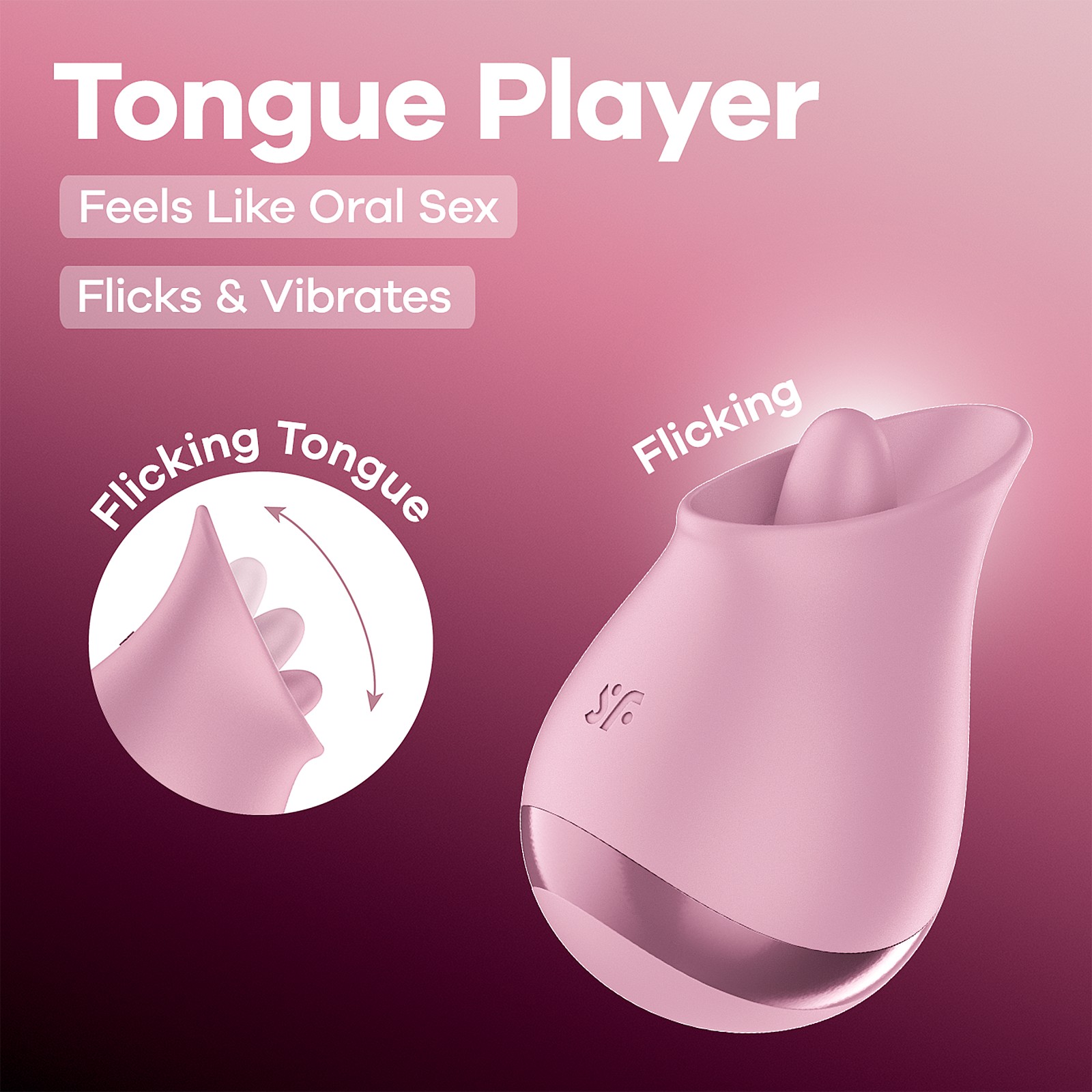Satisfyer Tongue Player (Mauve) s flickujúcim silikónovým jazýčkom napodobňuje realistické orálne láskanie a precízne rozmaznáva klitoris. 8 režimov lízania ponúka jemné aj odvážne tempo podľa nálady. 8 vibračných programov rozvibruje zóny slasti s presnosťou, ktorá vás nenechá chladnou. Super-mäkký telo-priateľský silikón je hebký a výborne prenáša vibrácie. Ergonomický tvar sadne do ruky a uľahčí ovládanie aj v najslastnejších chvíľach. Tichý motor stráži vaše súkromie a vodotesnosť IPX7 pozýva do sprchy či vane a uľahčuje čistenie. USB‑C nabíjanie a lítium‑iónová batéria udržia tempo s vašimi túžbami.