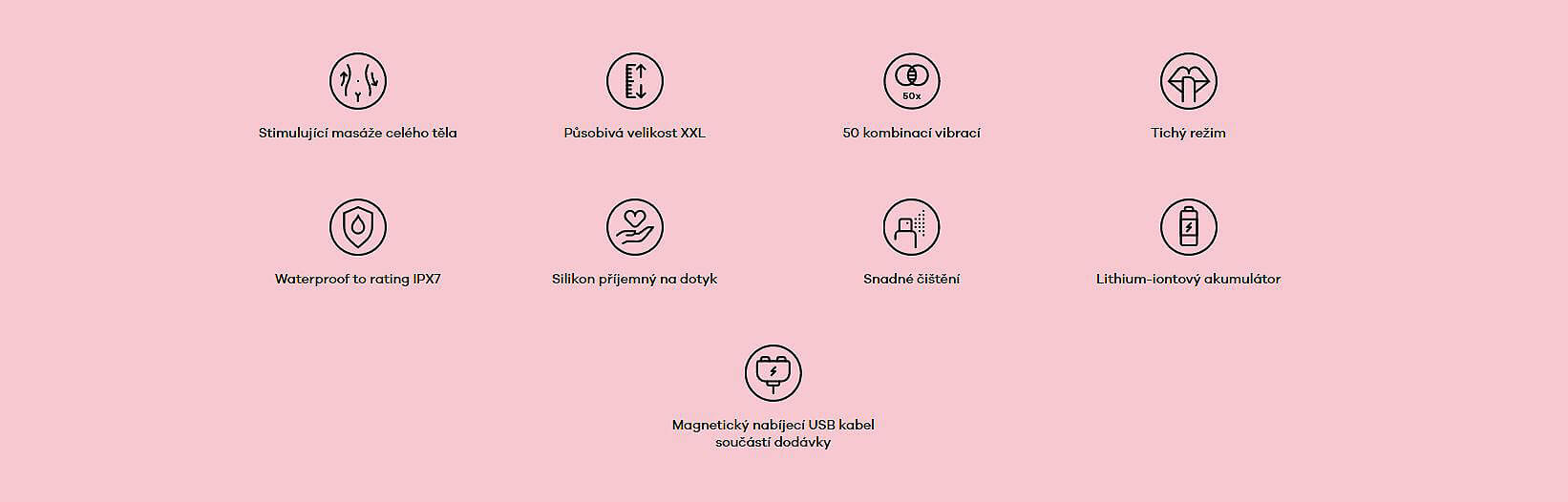 - Naprostá spokojenost, velká hlavice s velmi příjemným jemným povrchem, poměrně velký výběr programů vibrací, omyvatelný, bezva i na masáže celého těla.
