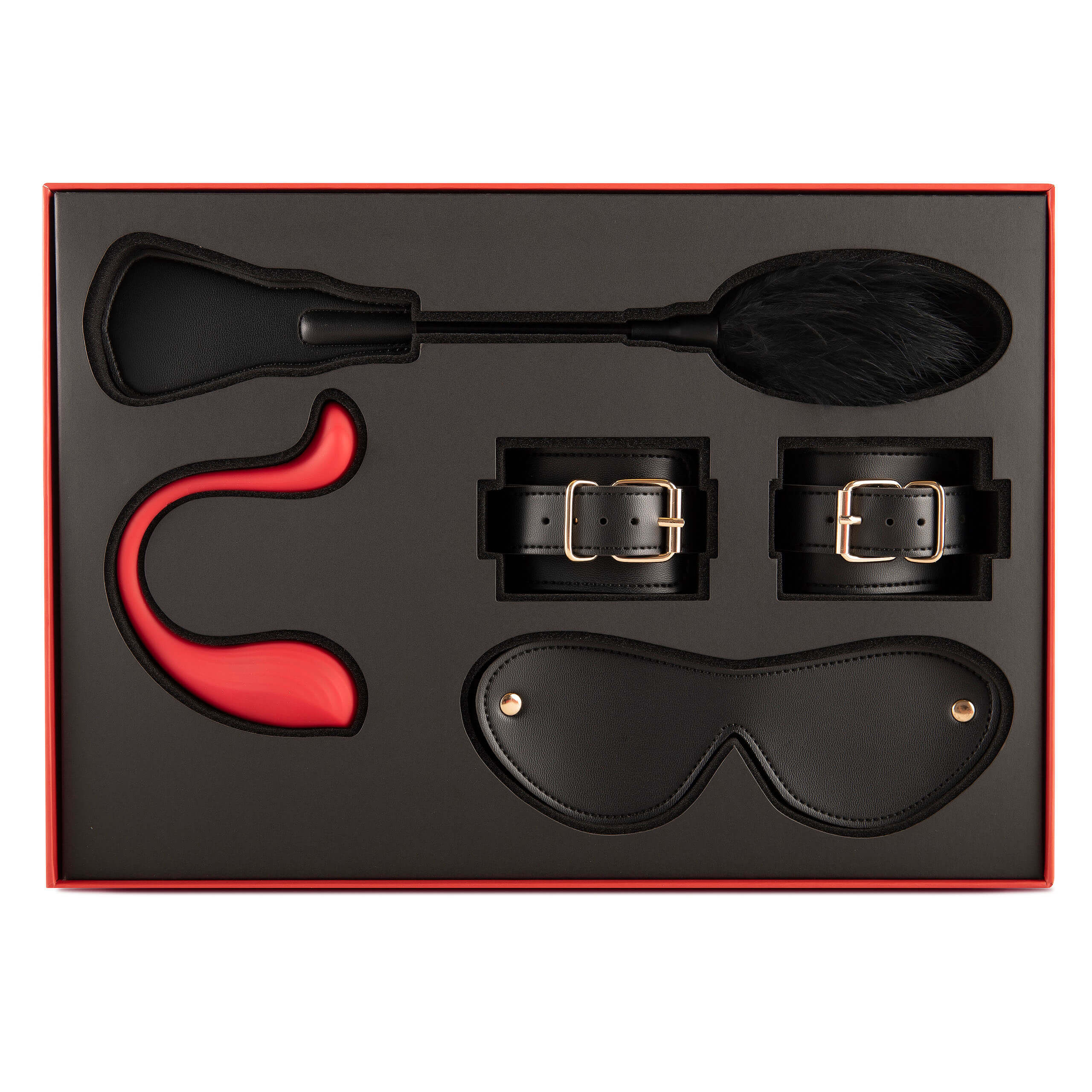 Balenie pozostáva z moderného vibrátoru pre ženy a BDSM kitu pre ľahké praktiky.
