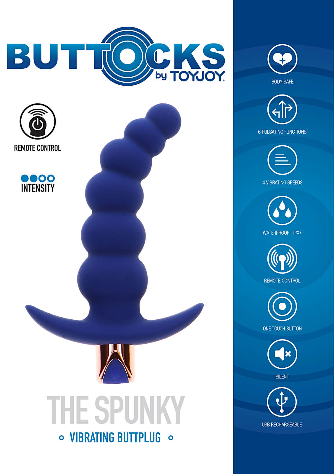 Spunky je vibračný análny kolík, ktorý je vybavený výkonným motorom so 6 rôznymi vibračnými režimami a 4 vibračnými rýchlosťami. Každý režim ponúka hlboké dunivé vibrácie, ktoré je možné ľahko ovládať na predmete alebo pomocou priloženého diaľkového ovládača. Buttocks od ToyJoy je prémiový rad vysoko výkonných análnych kolíkov vytvorených s radom špeciálnych funkcií pre zvýšenie vášho análneho potešenia. Buttocks od ToyJoy je perfektnou voľbou pre ďalšiu úroveň análnej stimulácie.