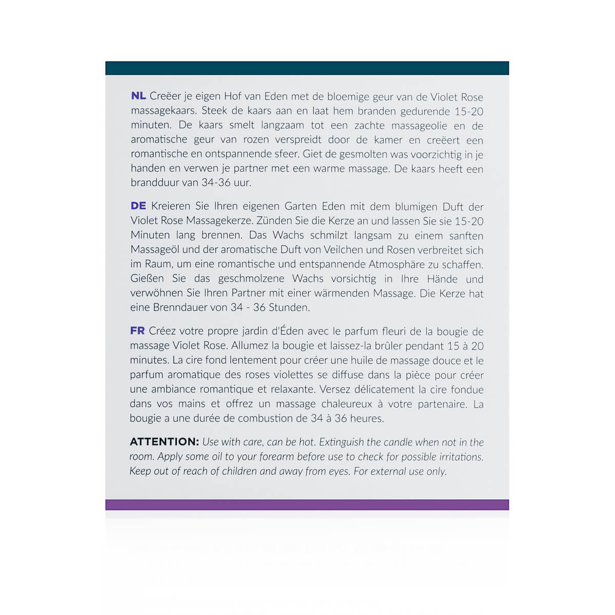 Vďaka unikátnej kombinácii vysoko kvalitných voskov a esenciálnych olejov, táto masážna sviečka vytvára príjemne teplý olej ideálny pre hladké masáže, ktoré uvoľňujú svaly aj myseľ. Roztavený vosk je navyše príjemne teplý, nie horúci, čo zaisťuje, že každá masáž je nielen uvoľňujúca, ale aj bezpečná.