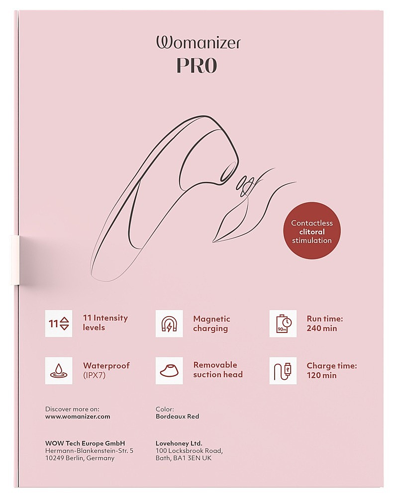 Skvelé pre sólo chvíle, hravú predohru s partnerom, nenápadné potešenie na cestách aj vodné radovánky. Womanizer Pro (Red) poteší začiatočníkov aj tých, čo túžia po rýchlych a opakovateľných orgasmoch bez priameho dotyku.